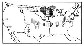 2、单选题 读“美国部分地区轮廓图”,回答问题。
