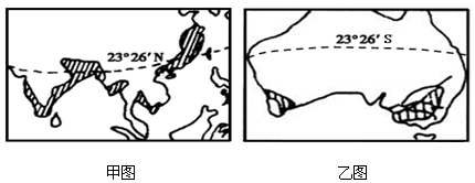小题1:根据图示的阴影部分分析,甲图该农业地域类型主要分布于东亚、东南亚和南亚的沿海地区,故判断为水稻种植业;乙图主要分布于澳大利亚的东南部和西南部,故判断为混合农业。