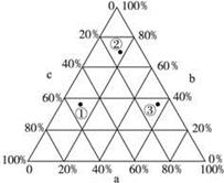 2.三轴坐标读图需根据每条坐标轴的原点位置,确定相应的纵坐标,以与纵坐标平行的原则读数。根据a、b、c分别表示一个0~15岁、15~65岁,>65岁三个年龄段的人口比例,则0—15岁人口比重最大的为③国家,故反映其人口增长快,未来的人口压力巨大,A项正确;人口自然增长率高则0—15岁人口比重高,故判断为③,B项错误;未来面临劳力短缺、社会保障负担重的是老年人口比重最高的①,C项错误;目前,外来文化对本地文化影响最大的应为人口大量迁入的,即经济发展水平最高,老龄化最严重的①,D项错误。