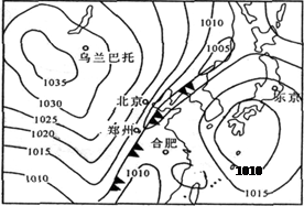3.郑州与合肥相比,郑州有降水,气温低、气压高。因为郑州恰逢冷锋过境,冷锋的雨区在锋后。合肥为单一暖气团控制,天气暖晴,气压低。