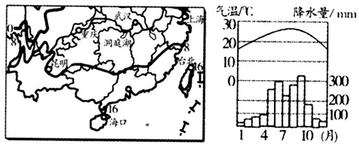 材料一:我国部分地区等温线分布图和海南岛某地气候资料图。
