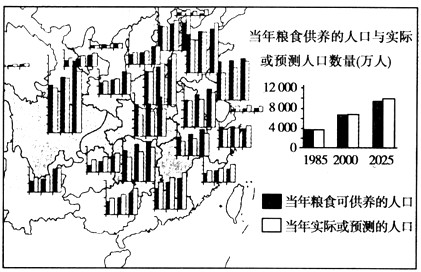 1、到2025年,粮食可供养的人口数大于实际(或预测)人口的省级行政区有