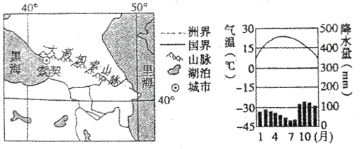 材料三:2014年2月7日至23日第22届冬季奥林匹克运动会在黑海岸边的俄罗斯索契市举行,下图为“索契地理位置及气候统计图”。读图回答下列问题。