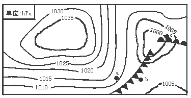 1、单选题 下图是北半球部分地区某时刻地面天气图。读图,回答下列各题。