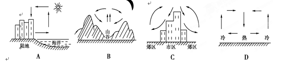 5、单选题 下列示意图中符合热力环流原理的是( )
