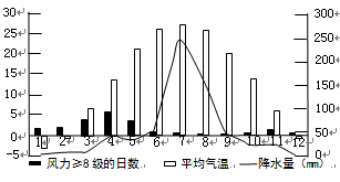 小题1:产生较大风力的月份,影响该地区的主要天气系统是