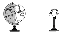 1、多选题 将一盏电灯放在桌子中央代表太阳,在离电灯大约l米远的桌边放一个地球仪代表地球,拨动地球仪模拟地球自转运动,如图。据此完成小题。