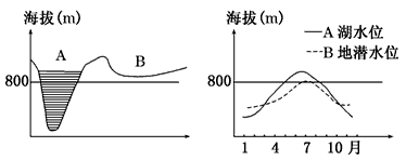 (2)A湖泊的水位情况是________月份前后最高,此时B地的潜水位约为________米。