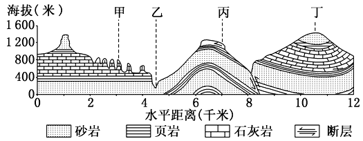 (4)该地区景观独特,是侏罗纪江南翼龙化石的发现地;山中瀑布美不胜收,峰下江水弯曲,状如“九龙戏珠”。根据材料,分别指出该地区地质作用的主要外力表现形式。(2分)