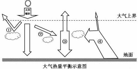 (4)火山喷发时产生的火山灰云团,削弱了到达地表的太阳辐射,反映在“大气热量示意图”中相应的数字编号是??、?;增强了射向近地面的大气逆辐射,图中相应的数字编号是?。从理论上说,空中火山灰云团使得当地昼夜温差变?。