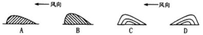 2、单选题 下面四幅图反映了沙丘构造情况,请指出哪一幅是流动沙丘构造图(? )