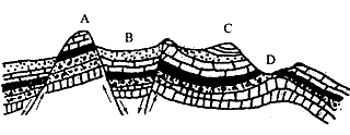 (1)图中A、B、C、D四地中,属于向斜的是_______,属于背斜的是_______,属于地堑的是_______,