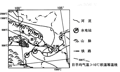 (1)积温是一个地区一年中所有大于等于10度的数值之和,用来反映热量高低。结合图示的积温等值线可直接判断,结合图示东西的地形差异可分析原因。由于地势由东向西逐渐抬升,所以积温数值由东向西逐渐降低。