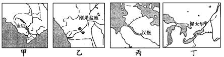 1.乙河河口没有形成三角洲,不能说明此现象成因的是2.四图中河流都参与海陆间的水循环,图中河流主要补给水源与西风带关系密切的是