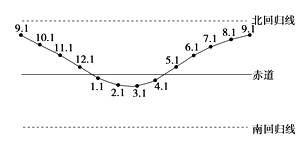 【小题2】从图中可看出赤道低气压带位置的变化( )