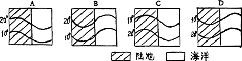 1、单选题 下列四幅等温线图中,表示北半球寒流分布的是