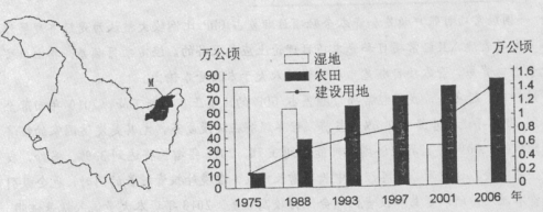 (1)据图可知,该区域土地利用类型有湿地、农田和建设用地三类,依据柱高和建设用地变化曲线来叙述土地利用类型的变化,进而很容易推出变化原因。