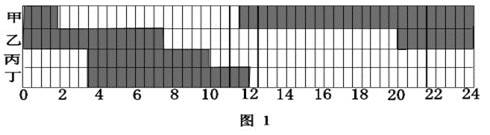 2、单选题  第30届奥运会于英国伦敦夏令时(比标准时间快一小时)7月27日20:12开幕,图1是开幕当日四个城市的昼夜长短分布示意图,图中阴影部分表示黑夜,读图完成问题。