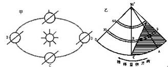 小题1:当地球出现乙图所示的现象时,地球公转至甲图中的(?)