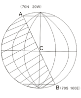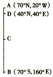 4、单选题 该图中的线段AB是地球上某时刻一条完整的晨线,C点是线段AB的中点。回答问题。