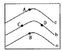 4、单选题 该图为高空3000米水平等压线分布,气压值d>c>b,a处的风向可能为
