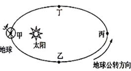 小题1: 图示为地球公转示意图,甲为近日点附近(1月初),丙为远日点附近(7月初),北斗导航卫星发射升空发生在2012年9月19日,应该在7月以后,次年1月以前,所以应选择丁点附近,