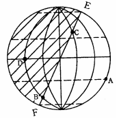 3、综合题 读“太阳光照图”(阴影表示黑夜,非阴影表示白天),回答下列问题。(10分)