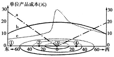 5、单选题 下图为某工业部门在某城市及其附近地区土地、运输和劳动力成本曲线图,其中土地成本和运费都只与距城市中心的远近、交通通达度有关。读图完成1~3题。