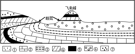 1、单选题 “飞来峰”为地质术语,意即外来岩块,常见老岩层覆盖在新岩层上,通常是老岩层自远处推移而来,上覆于相对停留在原地不动的原地岩块之上,当老岩层遭受强烈剥蚀,周围地区露出原来的新岩层,而残留的一部分老岩层孤零零地盖在新岩层上(如下图所示)。回答下题。