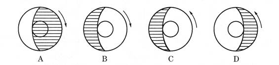 3、单选题 下面四幅图中,正确表示12月22日(北半球冬至日,阴影部分表示黑夜)昼夜分布状况的是(?)