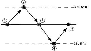 5¡¢µ¥Ñ¡Ìâ ÏÂͼ±íʾ̫ÑôÖ±ÉäµãÔÚµØÇò±íÃæÒÆ¶¯¹ì¼£Ê¾Òâͼ£¬¶Áͼ»Ø´ð¸÷Ìâ