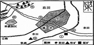 小题1:A项③处位于河流上游,布局化工厂有严重的水污染,不合理;B项③水果罐头厂属于原料指向型工业,应布局于原料地附近,⑤处更合理;C项③啤酒厂位于河流上游,水质好,且靠近市场;④化工厂生产有水污染和大气污染,故位于河流下游,当地最小风频的上风向,对城市的环境污染小,合理;⑤接近水果产地,布局水果罐头厂,合理。故选C项。