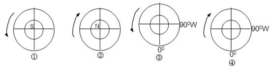 2、单选题 下列四幅图中,能正确表示地球自转方向的是( )