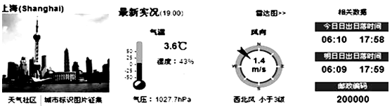 3、单选题 图为天气网某日天气预报的截图。据此完成下列小题。