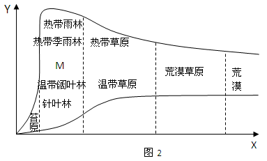 1、单选题 图2是“陆地自然景观类型分布与水热条件关系示意图”,读图回答问题。