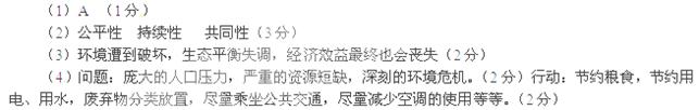 (3)要实现社会的可持续发展,生态持续发展是基础,经济持续发展是条件。但如果片面追求经济发展,势必出现的后果是?。(2分)