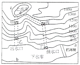 (2)乙;甲处海拔高,距离上水库近,水流势能小;丙处和丁处为抽水管线,不能发电;乙处与上水库高差大,水流势能大,发电作用强。