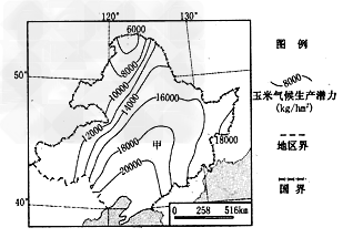 4、单选题 气候生产潜力是指一个地区光、热、水等要素的数量及其配合协调程度。图3 示意中国东北地区玉米气候生产潜力的空间分布。读图完成1--3 题。