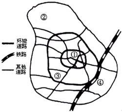 点评:本题难度较小,解答本题的关键是明确城市功能区的形成原因。不同类型的土地利用在城市里的集中,形成了不同的功能区。商业区、工业区、住宅区是主要的功能区,其形态、特征及位置具体如下表所示:
