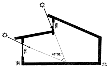 2、仅考虑地球运动,图示窗户、屋檐搭配对室内光热的影响有