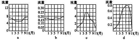 4、单选题 读“亚马孙河、尼罗河、长江、泰晤士河某站的相对流量曲线图”,回答问题。