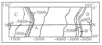 1、单选题 读图“ 太平洋部分海域等深线示意图”(下图),下列说法正确的是