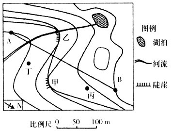 5、单选题 读某山地的局部等高线图,等高距为20米,AB为空中索道。回答1~3题。