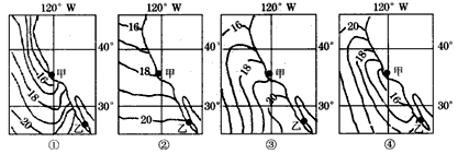 4、单选题 下面为四位同学分别绘制的某局部海域8月表面水温图(单位:℃)。读图并分析完成1—3题。