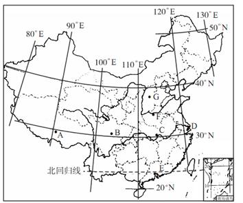 (2)在A、B、C、D、E、F、G七地中,太阳能资源最丰富的是 (填写字母)地,主要理由是
