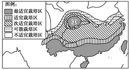 小题1:图中柑橘的分布充分反映了农业生产布局的特征是