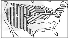 1、综合题 读下面“美国农业生产地域类型图”,分析回答下列问题。