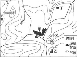 (5)从自然条件的角度,说明甲处成为该区域中心城镇的主要原因。(3分)