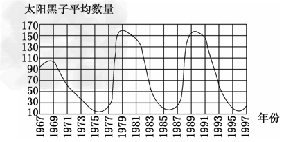 1、综合题 下面是1967~1997年太阳黑子的平均数量表,读表回答下列各题。