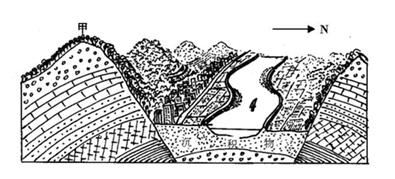 2、综合题 材料一?下面是“我国某地地形和构造剖面图”,读图回答问题。